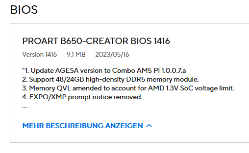 - Mainboard: Asus B650 Creator ProArt