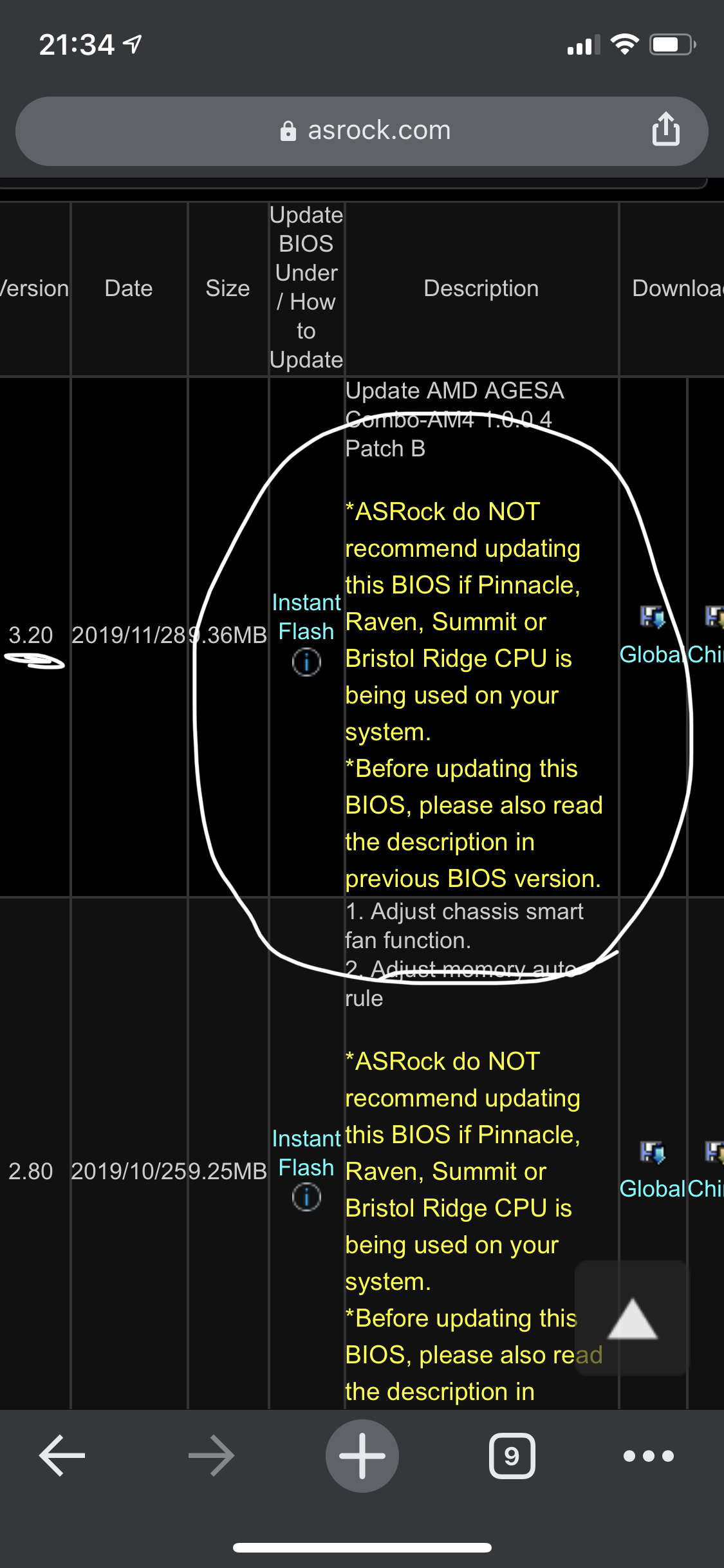 Ist einfach die Biosversion. Und ja, ich war bis dato auch der Meinung das was Drauf ist oder sas Aktuellste ist immer das Optimalste. Wenn dasteht bei AsRock auf der seite: Pinnacle Ridge (und noch ein paar andere) werden NICHT Supportet.. Warum nicht? Ich meine bei anderen Herstellen klappts auch. Ein Kumpel von mir hat des B450 Tomahawk, gleiche CPU. Da läufts auf anhieb. Und er hatte damals schon mit AsRock nur Probleme. Ich war der Meinung das die richtig gute Boards haben. Vom Design und Optischen her ist es auch das beste. Bringt mir halt nur nichts wenn der Chipsatz mit der Aktuellsten Bios Version eine 1 Jahr alte CPU (?) die Cpu nicht mehr Unterstützt.