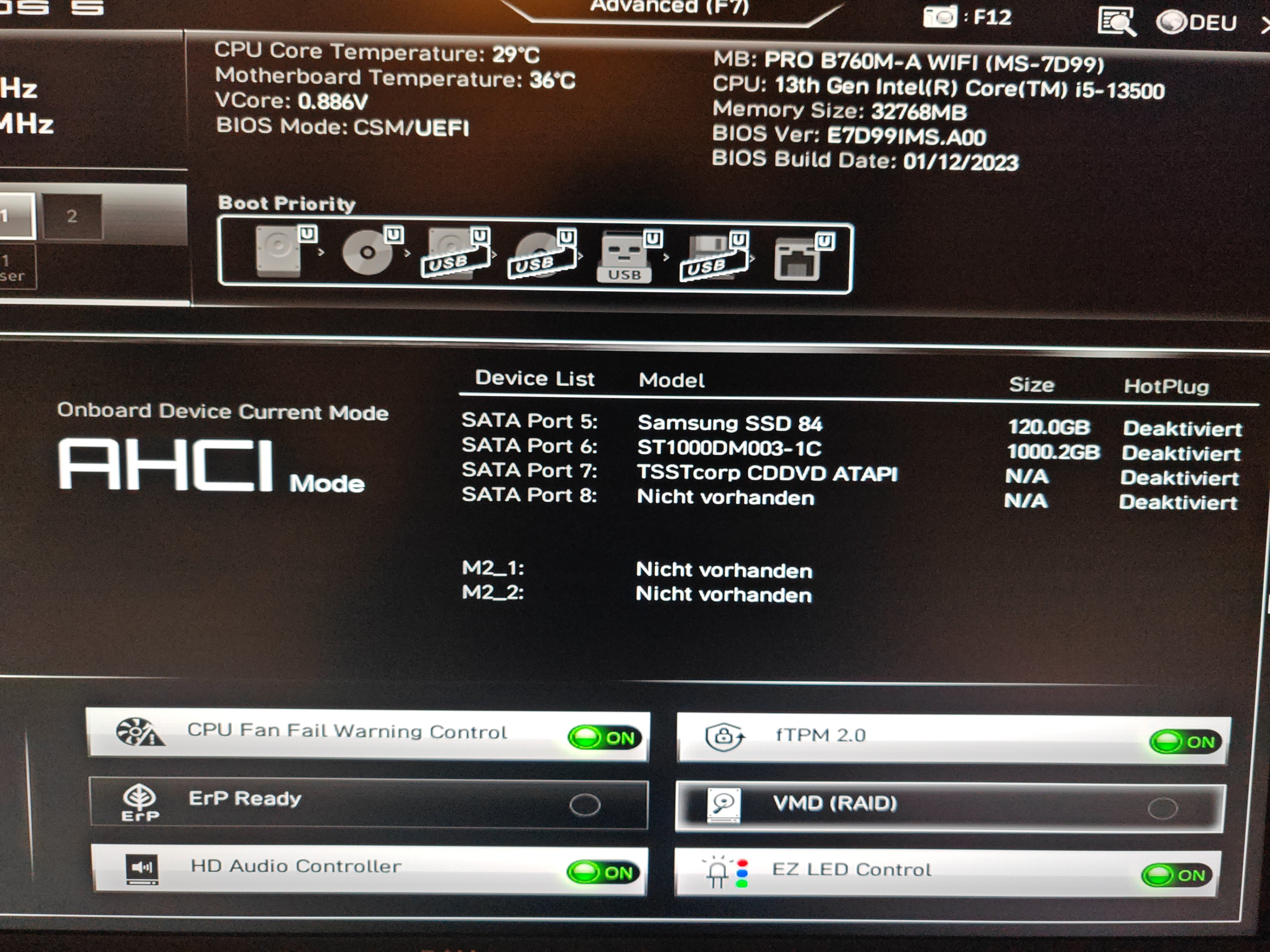 Festplatten werden aber glaube ich erkannt. Boot Reihenfolge dürfte auch passen oder?