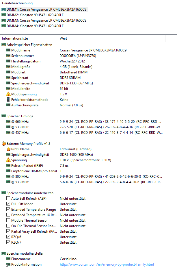 Nun heute morgen habe ich erfasst, dass der PC nur startet, wenn ein Kit drin ist. (Sprich PC startet nur, wenn entweder nur Kingston RAM drin ist oder nur Corsair.)
