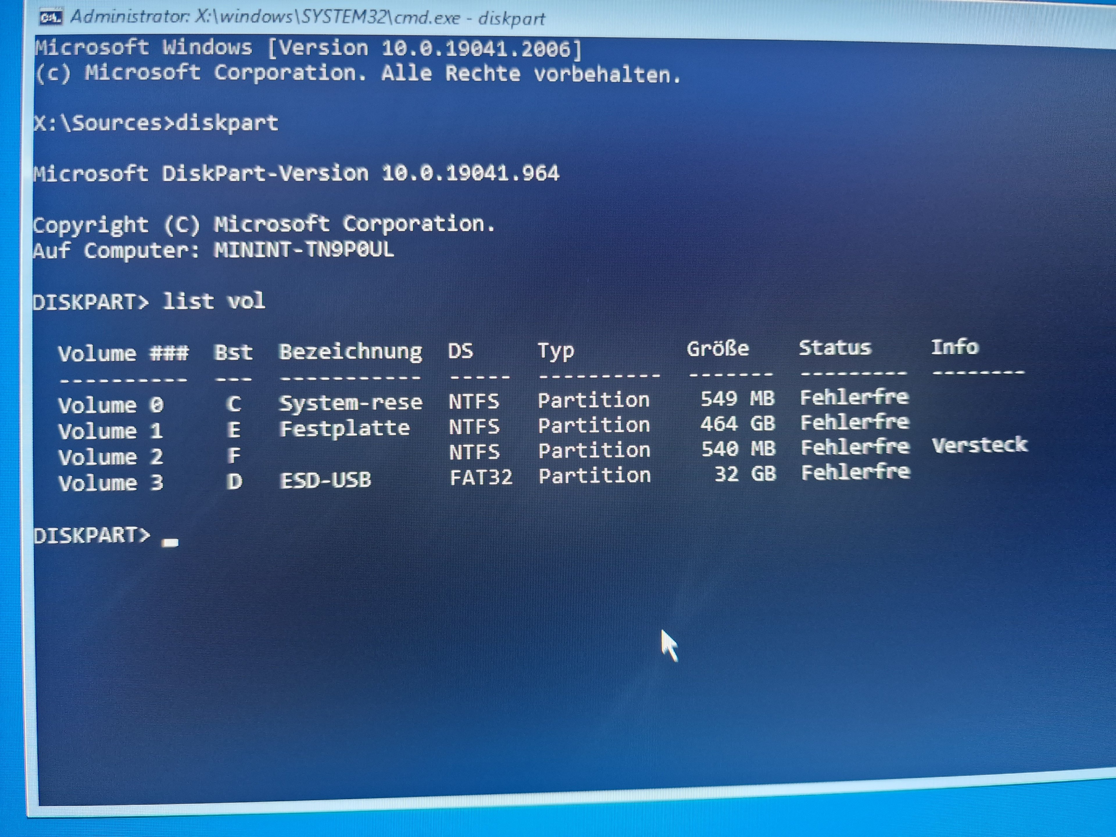 Ich verstehe nicht, warum das Bios beide ssds erkennt, aber in der eingabeaufforderung NICHT.