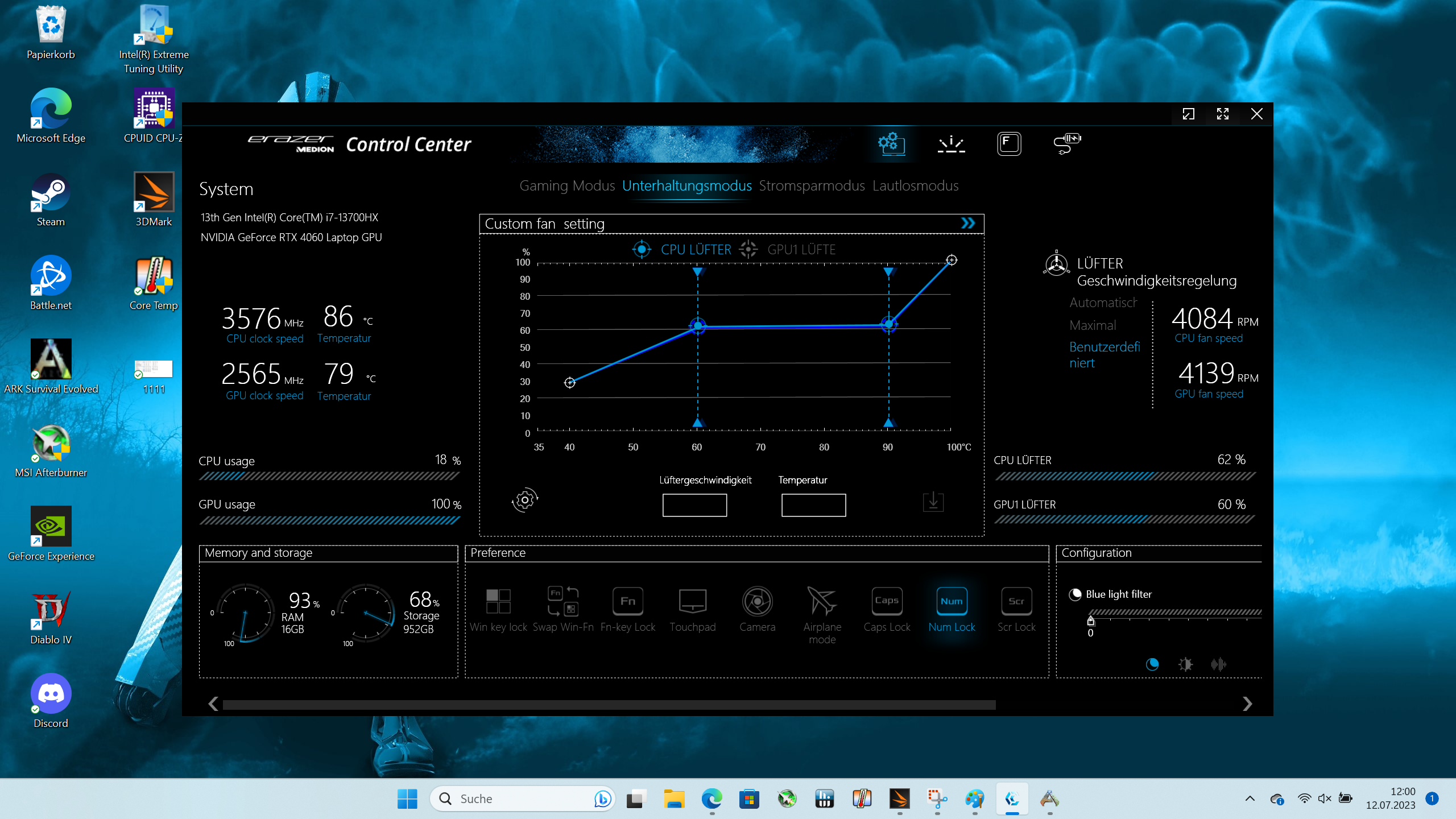 Ja, alles bestens wie auch andere schon schrieben. Das sieht nach ganz normalem Notebook Verhalten aus im Gaming Modus und der Unterhaltungsmodus ist halt spezifisch für das Gerät.