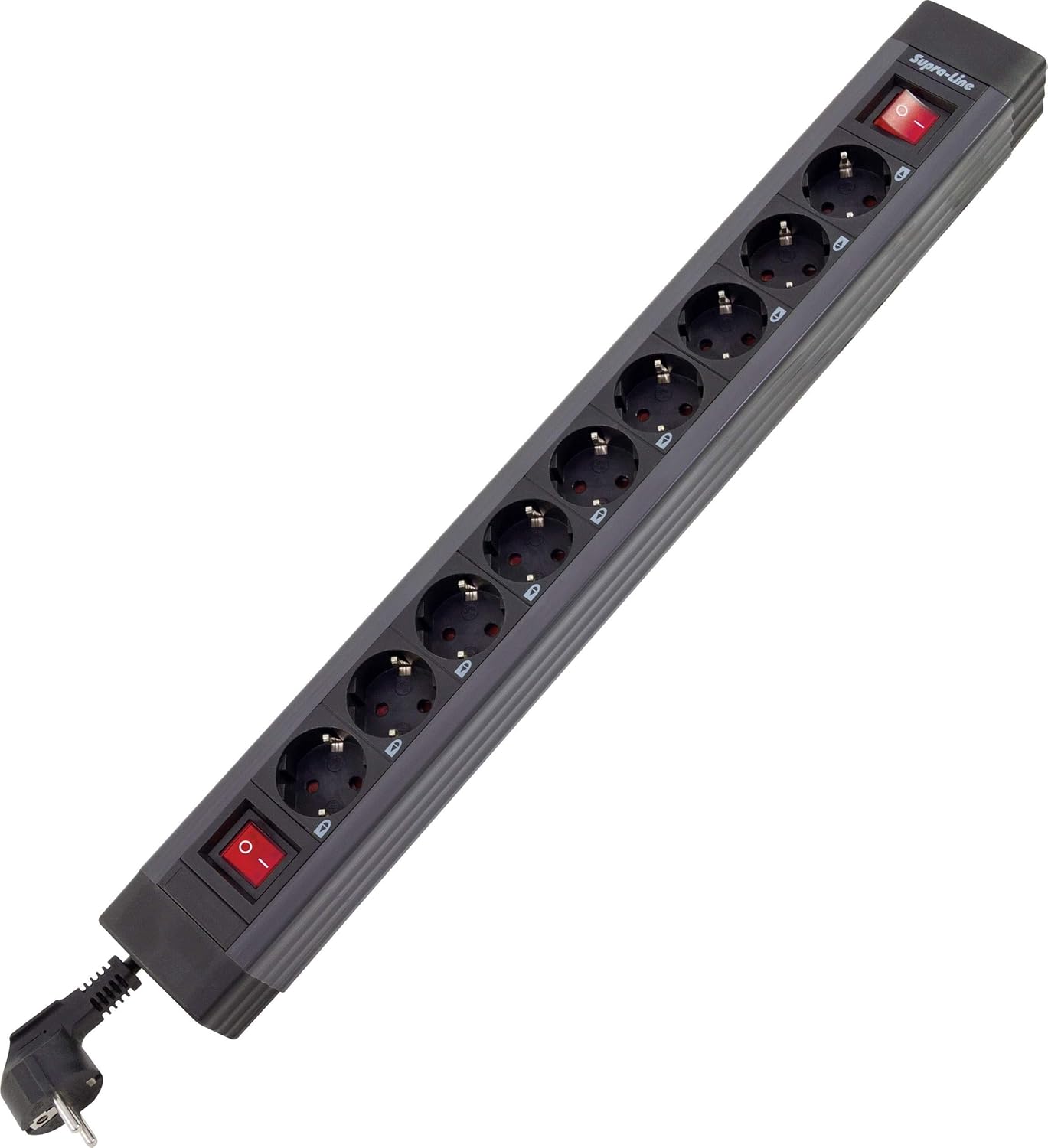 Es handelt sich um eine Ritter REV Steckdosenleiste mit 2 Schaltern, ohne Master Slave. Direkt an der Wandsteckdose verbunden.