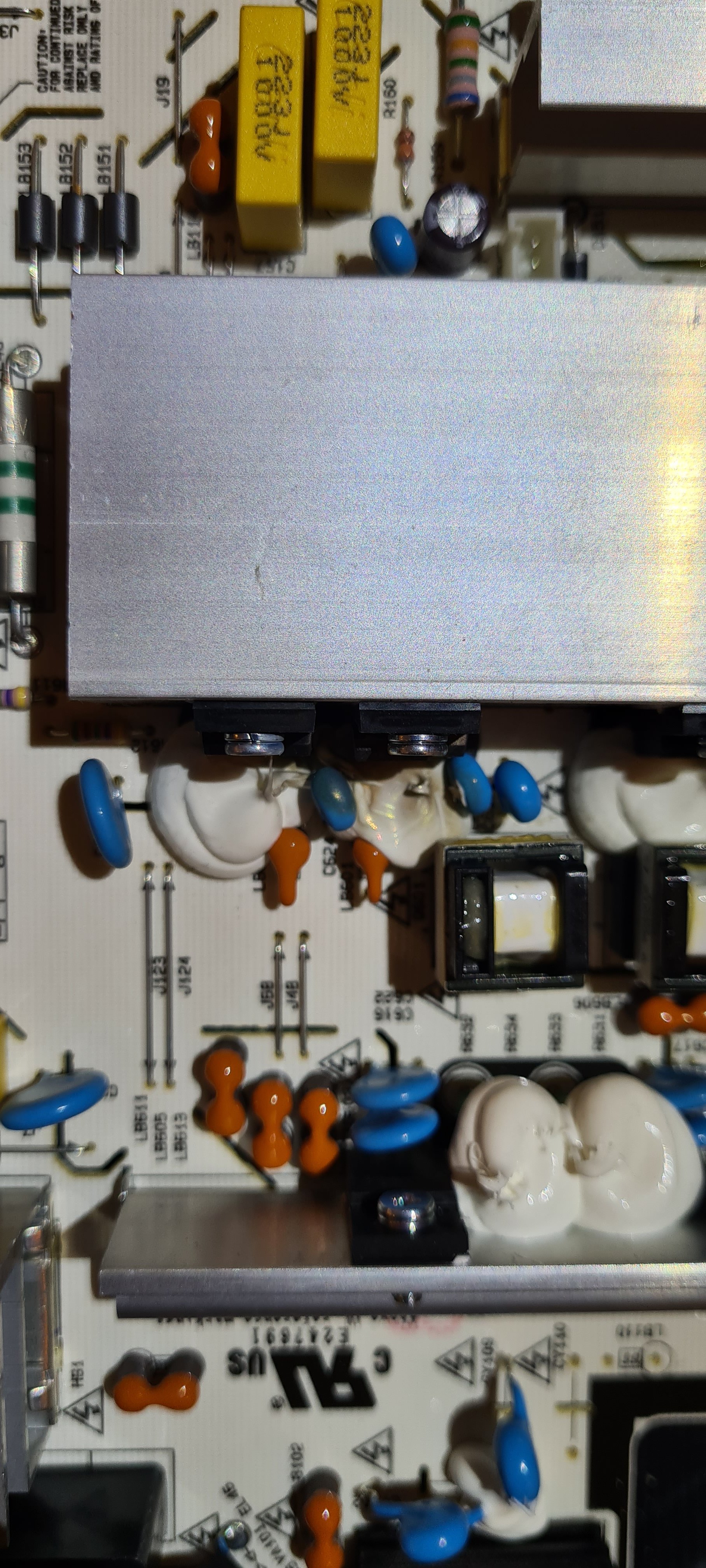 Ich habe das Backcover des TVs abgenommen und habe festgestellt, dass dort etwas verschmort ist (siehe Anhang, vermutlich das Netzteil wie es aussieht).