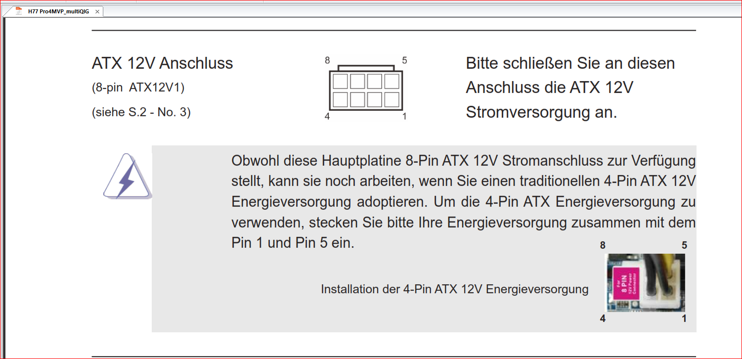 Bild 1: CPU Strom ist nicht angeschlossen.