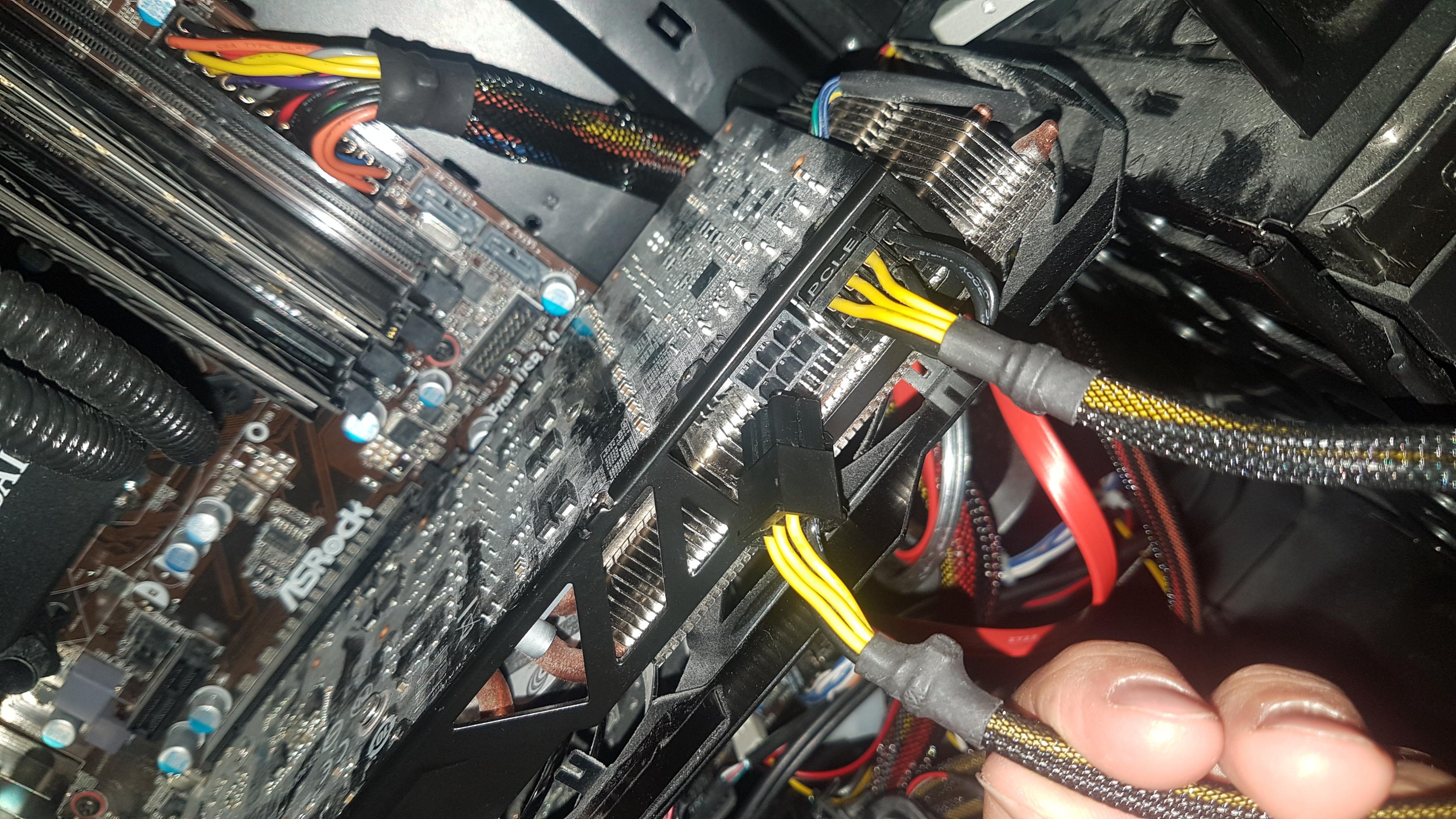 Dann solltest Du den mal unter der Grafikkarte verlegen, dort lang wo das Stromkabel vom Board liegt, evtl das Netzteil anders rum einbauen, wird aber wegen dem komischen Lüfter wohl nicht klappen? An der Soundkarte ist doch kein Stromkabel, das sieht mehr aus wie ein Stecker vom Gehäuse um den Soundanschluss vorne abzugreifen.