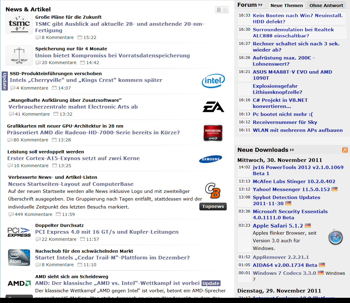 dem kann ich mich leider auch nicht anschließen... das layout nach tagen sortiert und ganz oben die 3 topnews vom tag ist wesentlich übersichtlicher.Verbesserte News- und Artikel-Listen