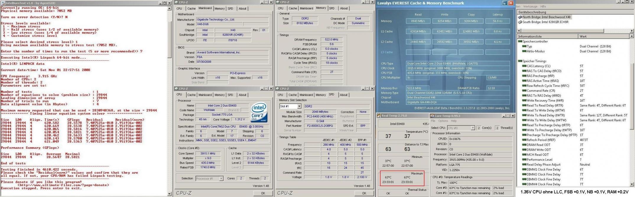 Wird das Tool eigentlich noch getestet? Mein 24h primestable auf 3,2GHz laufender E6400 hat im IntelBurnTest nur einen von 20 Durchläufen bestanden... Daraufhin hab ich dann erstmal wieder runtergetaktet und überlege, was ich nun davon halten soll. Auf Standardtakt besteht er die 20 Durchläufe, dieses Programm scheint Stabilität wirklich ernsthafter zu testen, als Prime es tut.