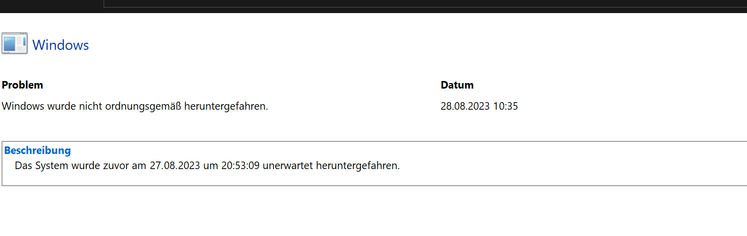 Schauen ob Windows wirklich ordnungsgemäß herunter fährt. Trotzdem gleicher Effekt.