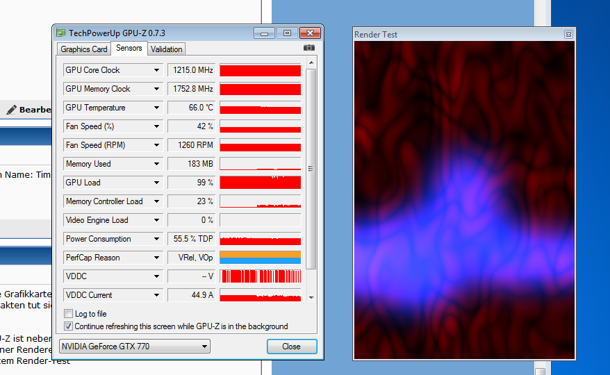 Laut MSI Afterburner ist die Karte dabei zu fast 100% ausgelastet.