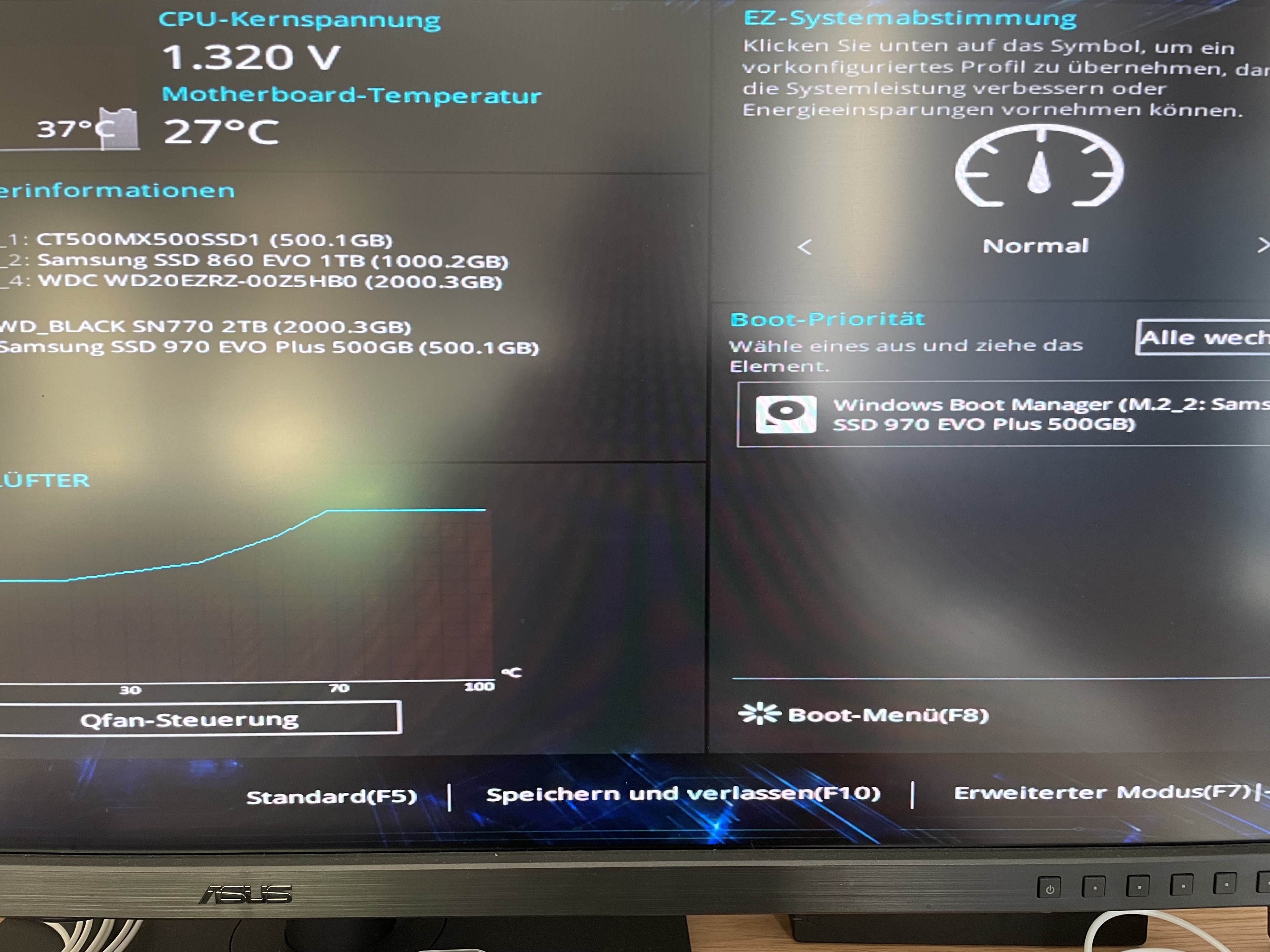 Der erste Auswahlpunkt (Volumen 2) ist die WD SSD und es startet dann alles normal. Jedochwürde ich gerne dieses Boot Menü weg haben wollen. Im BIOS kommt es indes noch lustiges - hier kann ich bei der Bootauswahl lediglich die kleine 970er EVO im Boot Manager wählen.
