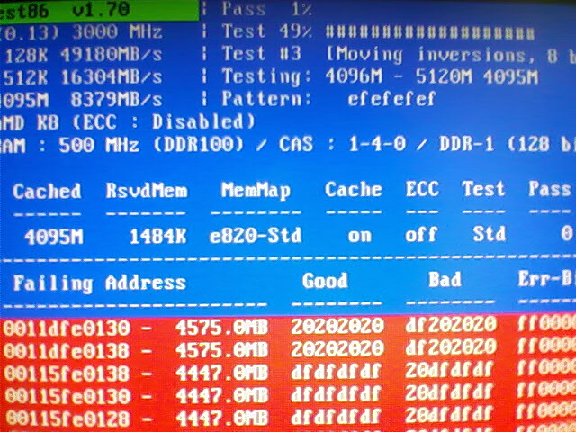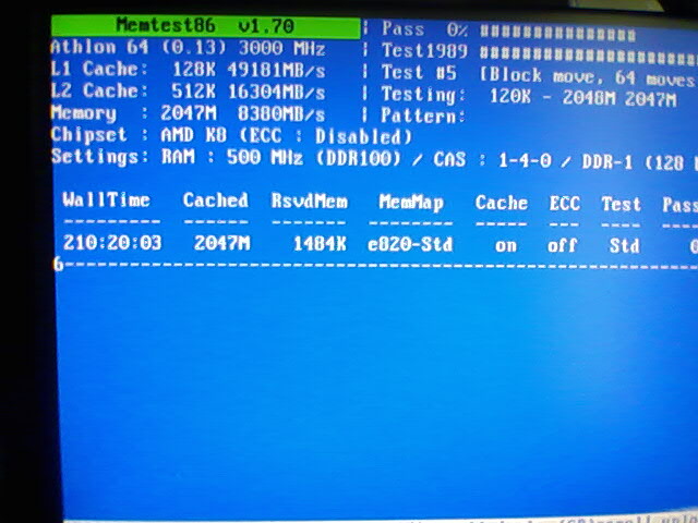 Heut habe ich Arbeitsspeicher von Corsair (2*2GB PC2 6400) verbaut zum Testen... die Testzeiten erinnerten schon mehr an alte Memtest-Tests (2 Tests über 4 Stunden)... das Ergebnis ist folgendermaßen ausgefallen: