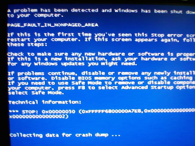 Aber "page_fault_in_nonpaged_area" kann auch mit der Grafikkarte (Speicher) oder Festplatte zusammenhängen glaub ich...