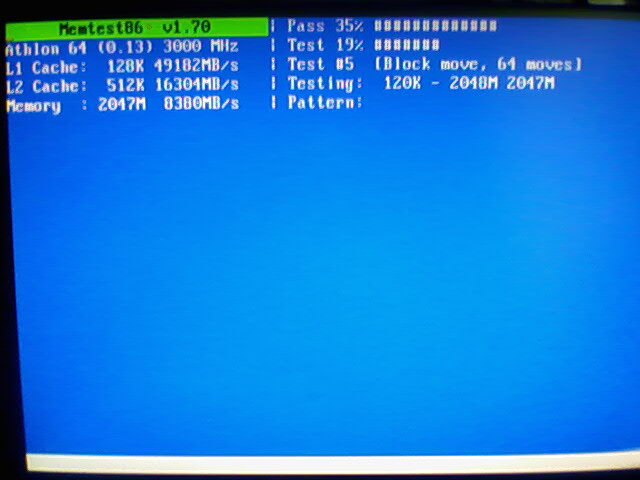 1;3 - 1;3 - Fehler - Memtest hat beim 1. versuch bei 35% einfach das Bild abgestellt und alles reagierte nicht mehr beim 2. versuch sprang er bei 35% in der Testzeit auf 145:59.59 und es ging wieder nichts mehr (siehe Sreenshot 1)