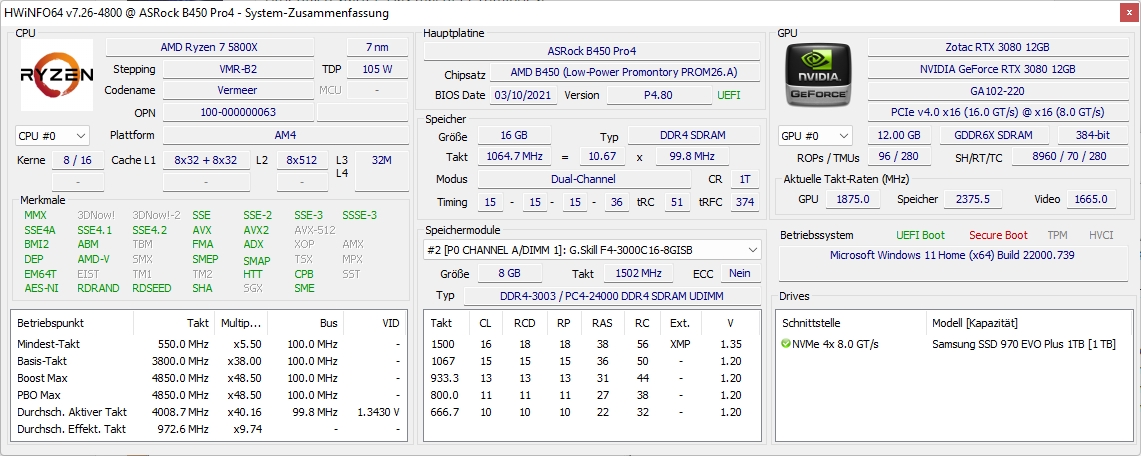 Daraufhin habe ich die vorletzte Bios Version aufgespielt statt der aktuellsten und einfach Default geladen. Ram also auch mit 3000 MHz getaktet.