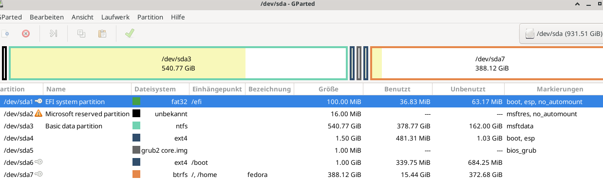 Da mir unter Fedora 39 der Festplattenspeicher wieder mal knapp wird, will ich ein Hdd Volume einer Harddisk, die zuvor ein Windows NTFS Formatiertes war, zusätzlich in Fedora einbinden (als ext4 oder btrfs).
