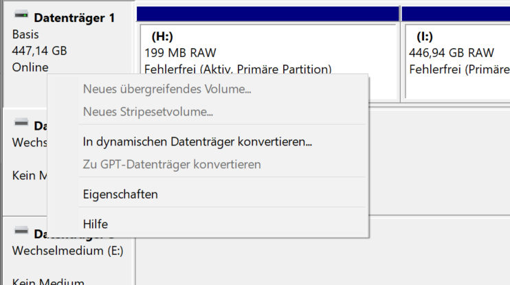 Also habe ich im Partitionsmanager geschaut und da wird mir die selbe Fehlermeldung gegeben wenn ich versuche den Datenträger zu einem Dynamischen Datenträger zu konvertieren. Ich möchte die daten von meiner alten SSD gerne retten.... Ich glaube nicht das ein dynamischer Datenträger helfen würde....