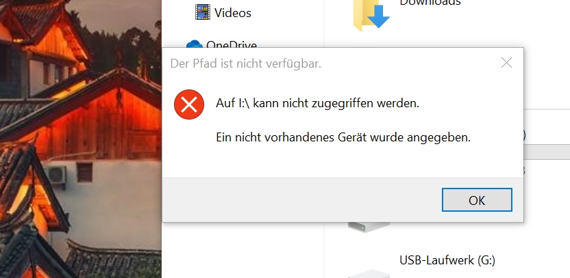 Der Fehler: Der Pfad ist nicht verfügbar, kommt auch in der Datenträgerverwaltung.