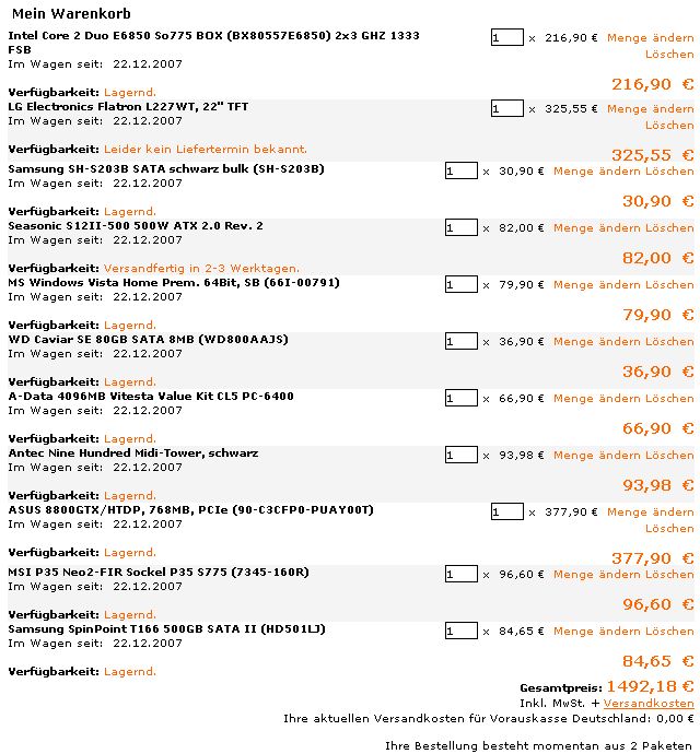 pünktlich zum Neujahr 2008 möchte ich mir ein neues System kaufen.