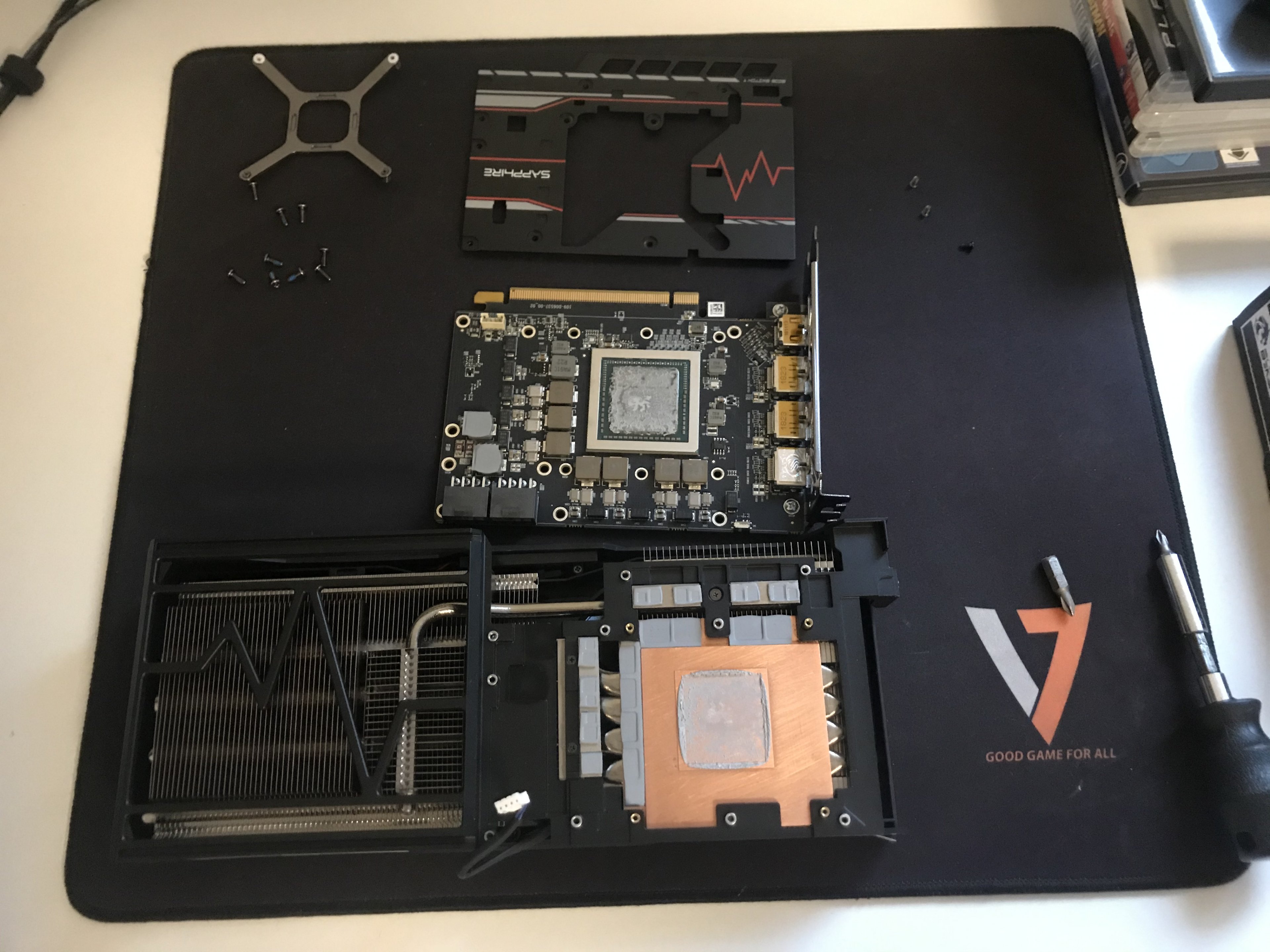 Der CPU-Kühler macht ebenfalls einen guten Eindruck. Leider konnte die alte Backplate nicht übernommen werden und man muss halt auf die Wärmeleitpads aufpassen, da die beigefügten 1mm dicken nicht passen. Ich hatte mir vorher 0,5 mm dicke bestellt (hab mich zum Glück vorher schlau gemacht). Leider hab ich vergessen ein Bild vom Umbau zu machen.