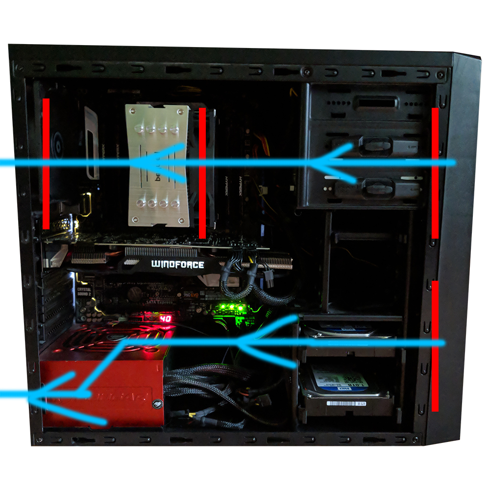 Zurzeit habe ich ein Gehäuse wo sich die Hitze Staut trotz 5 Lüfter - Meine Überlegung war nun: Neues Gehäuse + Fertige Wasserkühlung!