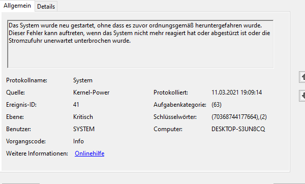 Mein antivirenprogramm ist total av wobei ich das auch schon komplett deaktiviert hatte und auch geschaut hab das blockiert nichts.mae1cum77 schrieb:Die können hilfreich bei der Bestimmung des Problems sein, wenn welche erstellt werden. Ein Blackscreen mit Shutdown ist immer schwer einzuschätzen.