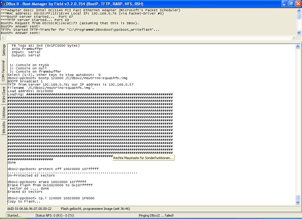 Er flasht zwar das image aber es kommt nichts beim einschalten der D Box, also kein BS, sondern nur das von immer "betaresearch" und dann "Laden..." , und dann erscheint fehlermeldung das das BS defekt sei.