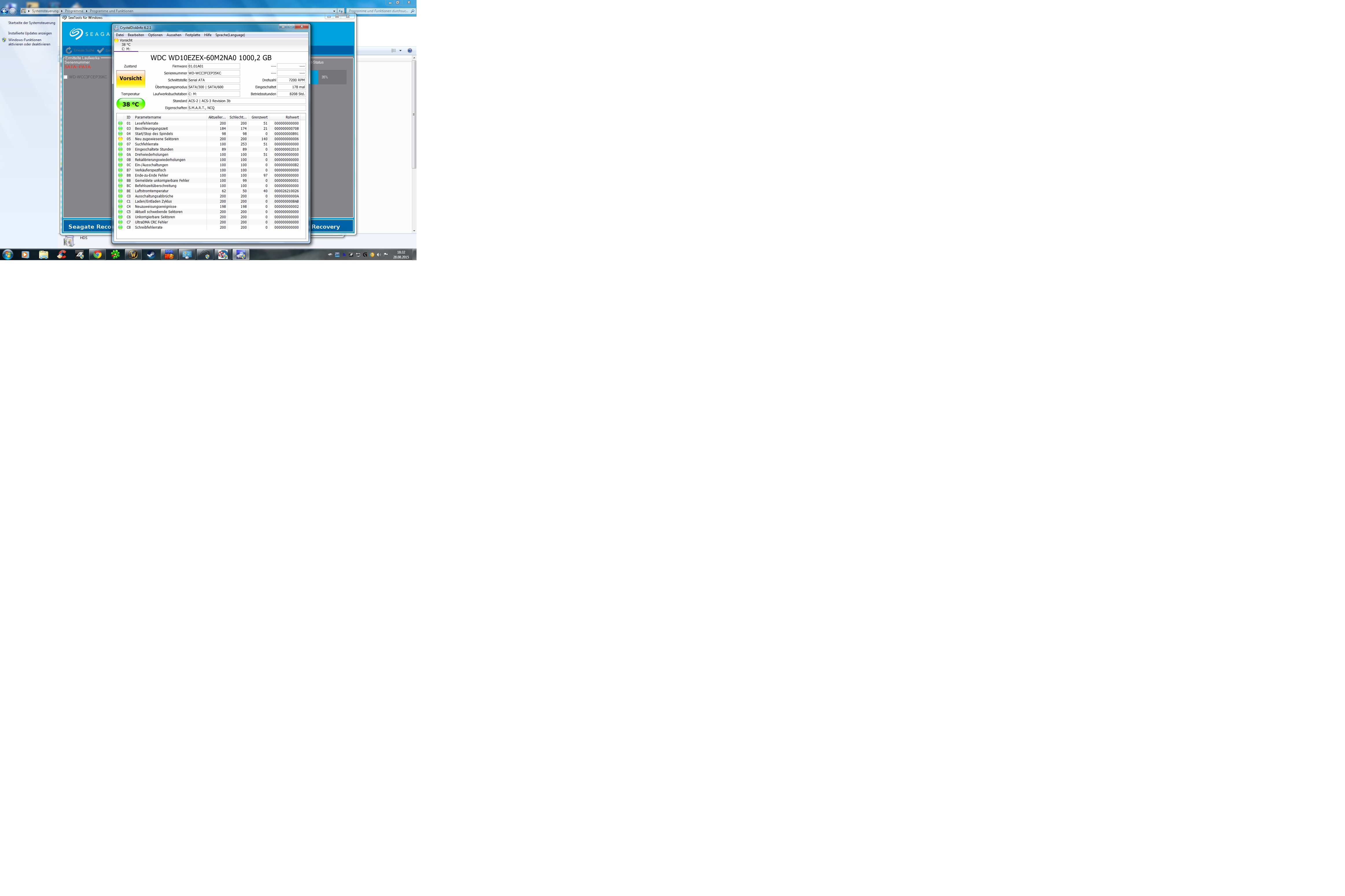 6 Wiederzugewiesene (also defekte Sektoren die durch Reservesektoren ersetzt wurden) sind bei 8208 Betriebsstunden noch in Ordnung, üblicherweise werden Platten ab einer dreistelligen Anzahl von Wiederzugewiesenen Sektoren ersetzt da dort die Wahrscheinlichkeit für Oberflächenfehler hoch ist.