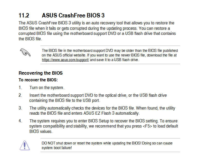 Ich habe bereits ein BIOS Flashback gemacht. Im Anschluss habe ich versucht das BIOS über den Reset Knopf zurückzusetzen. Aber alles ohne Erfolg. Nächster Schritt wäre vielleicht noch der gute alte CMOS Reset mit Jumper oder Batterie rausnehmen.