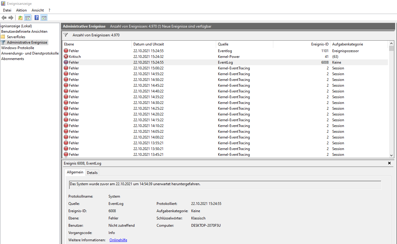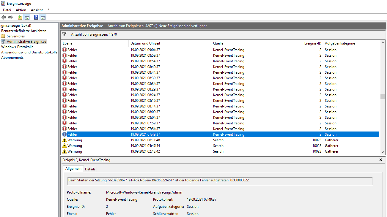 Protokollname: Microsoft-Windows-Kernel-EventTracing/Admin