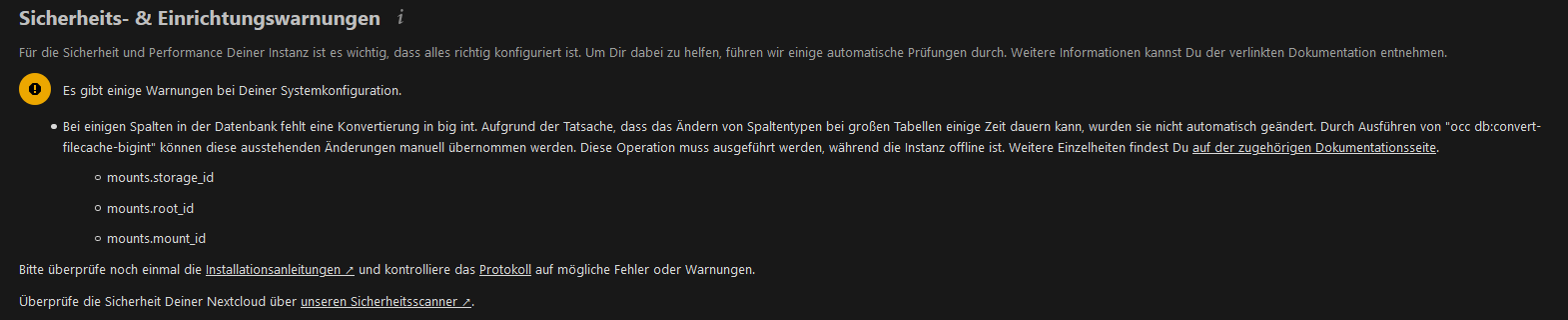 sudo -u www-data /var/www/nextcloud/occ db:convert-filecache-bigint