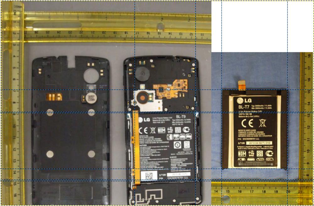Ich hab mich nochmal mit dem Akku Thema beschäftigt und die weiten des Internet Durchstöbert, mal die Dokumente des FCC angeschaut mit dem Nexus 5 und deren dort abgebildeten LG BL-T9 Akku. Im Vergleich dazu mal den LG G2 Akku BL-T7 angeschaut.