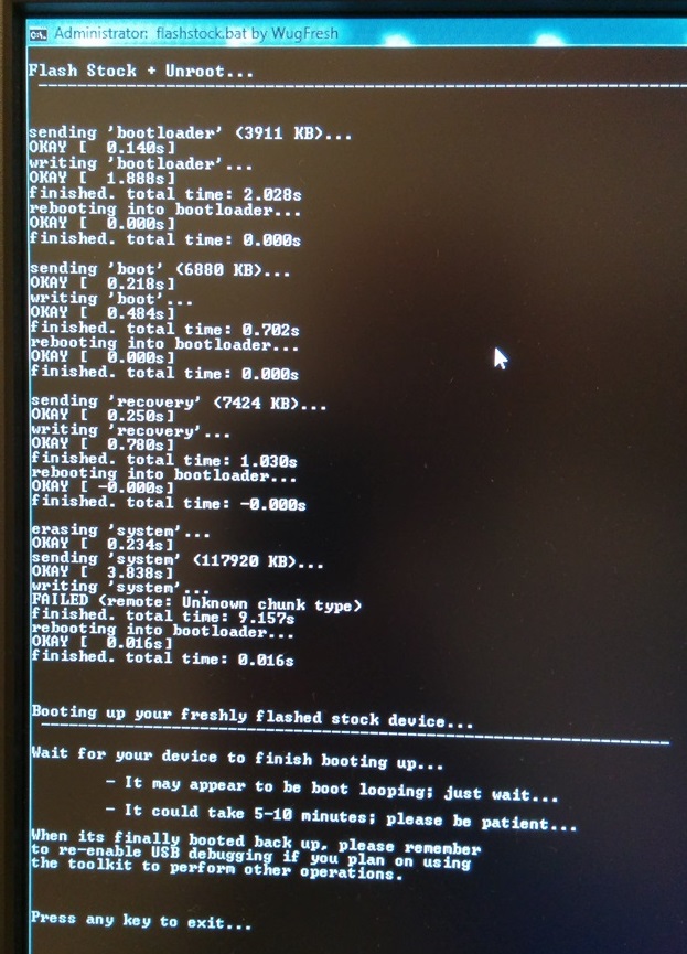 Ich habe mit dem Nexus Root Toolkit 1.7.5 -> Flash Stock + Unroot versucht, das Google Factory Image 4.3 (JWR66Y) zu installieren.