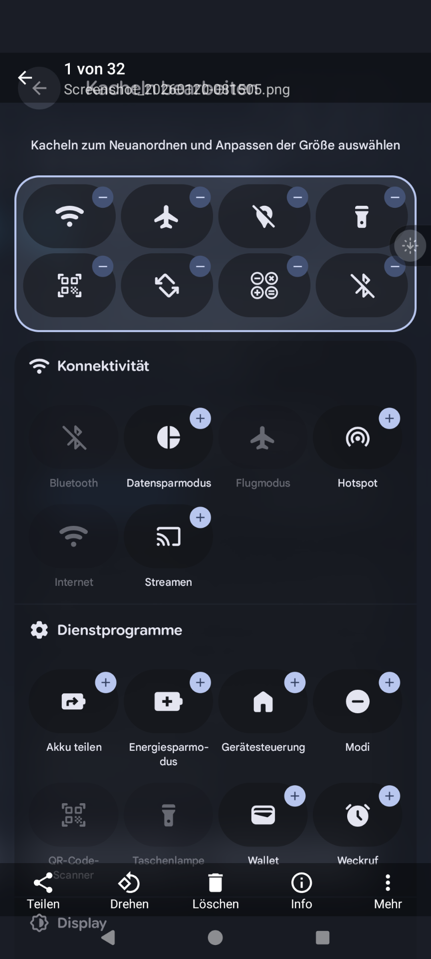 klar, aber zur auswahl stehen unter konnektivität eben nur die oben gezeigten. nu weiß ich's und werd damit leben müssen und können ;-)FCK_PTN schrieb:Hast du keinen "Bearbeiten" Modus, wo du weitere Kacheln Ein und Ausblenden kannst?