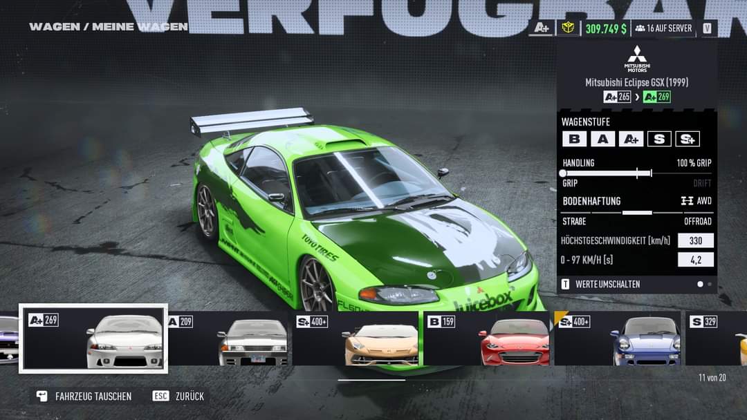 AndereNFS Unbound Folie an etlichen Autos ausgegraut