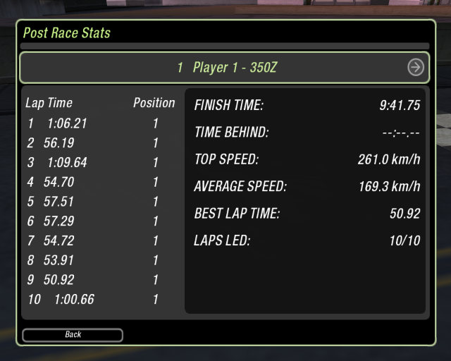 Ich sag mal ohne NOS ist der Rundendurchschnitt von mir 53sec......die 1 Minuten Runden kamen als Anlauf zu Stande für NOS da ich driften musste um NOS aufzuladen. Deshalb die etwas längere Zeit.