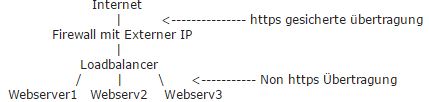 Nur der Loadbalancer übergibt nach außen hin das SSL Zertifikat, intern wird alles nur über http übertragen.