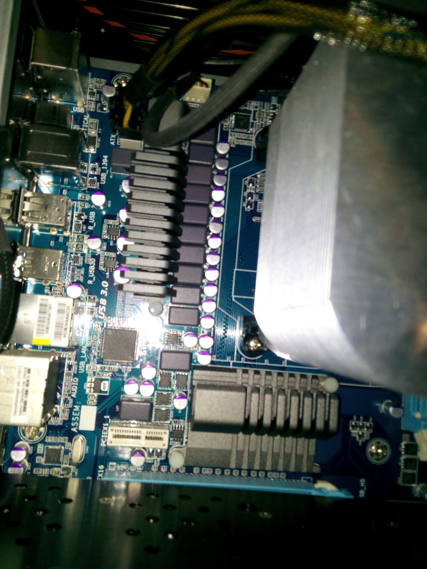 Der TE hat schon recht. Links neben dem CPU-Kühler sieht man Kühlkörper auf den Spannungswandlern. Die großen grauen Türme müssten Widerstände sein. Spannungswandler sind eher klein, flach und schwarz.