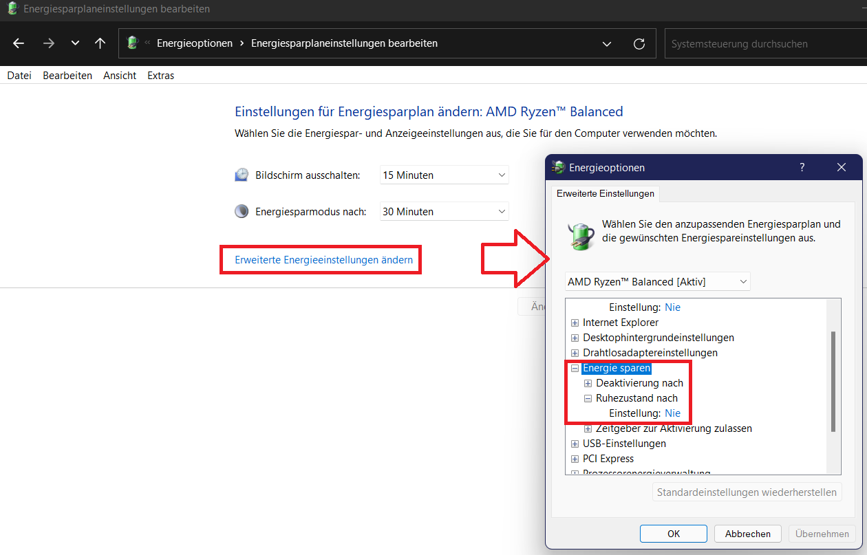 Allerdings würde ich gerne einstellen, nach welcher Zeit er in den Hibernate wechelt.