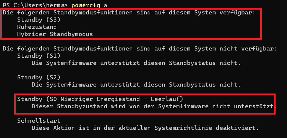 Dieser Standbystatus ist deaktiviert, wenn der energiesparende S0-Leerlauf unterstützt wird.