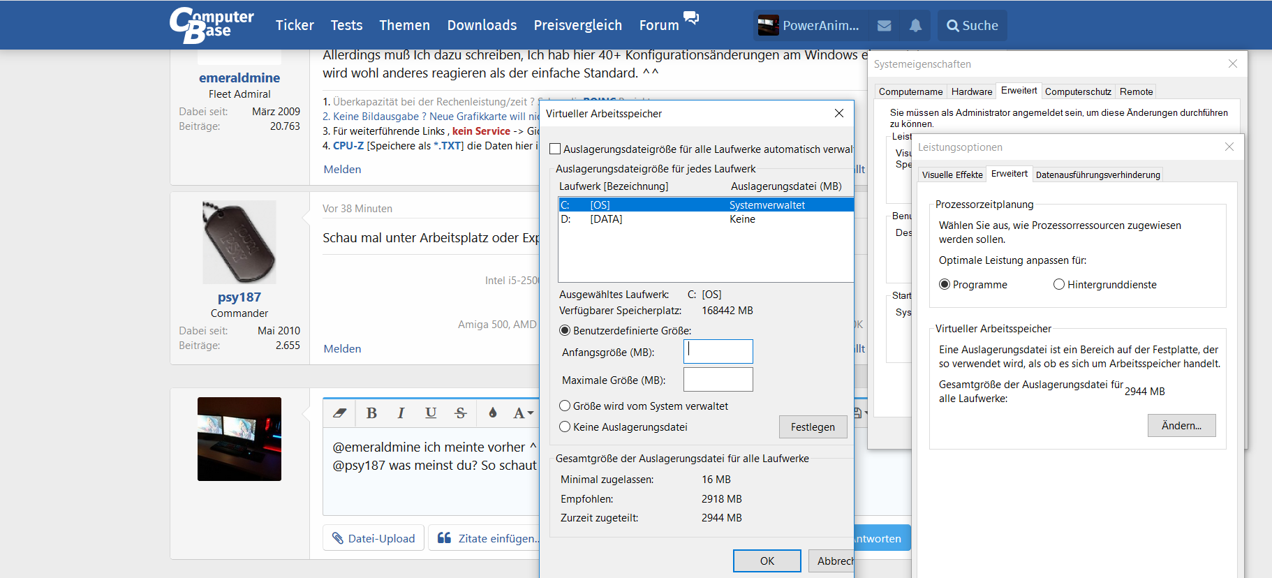 Nach googeln habe ich gesehen, dass es hierbei am "virtuellen Arbeitsspeicher" hängt. Dieser ist bei mir bei 2944 MB von der Grundeinstellungen eingestellt.