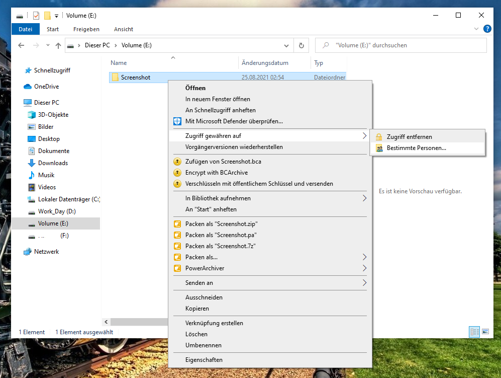 In Dateiexplorer > Zugriff gewähren auf > bestimmte Personen Bild 1