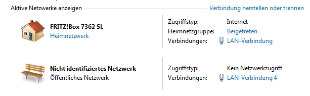 Nabend, mir ist aufgefallen, dass bei mir im Netzwerk und Freigabecenter noch folgendes zusätzlich zu meiner LAN-Verbindung angezeigt wird.