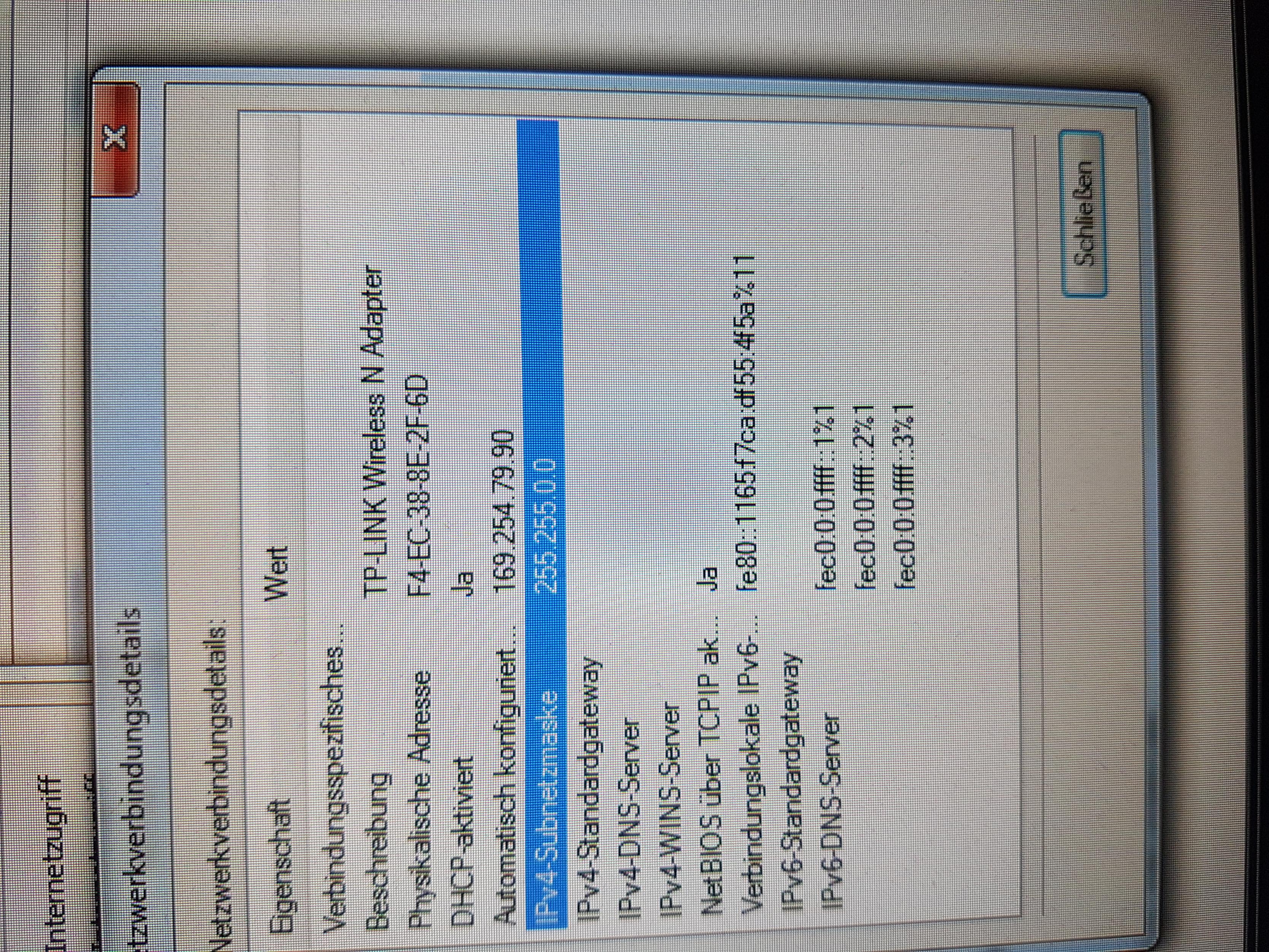 seit heute geht mein W-LAN nicht mehr richtig. Muss irgenetwas verstellt haben. Kann das nicht mehr nachvollziehen. Auf jeden Fall kann ich mit dem Router normal verbinden aber es heißt dann Nicht identifiziertes Netzwerk. Wenn ich eine Problembehandlung mache kommt als gefundenes Problem Drahtlosnetzwerkverbindung verfügt über keine gltige IP-Konfiguration. Hab auch schon viel gegoogelt aber was ich so gefunden habe hat mir nicht geholfen. IP_Adresse und DNS-Serveradresse werden automatisch bezogen. Auf meinem Laptop geht das Internet normal. Hab noch zwei Bilder angefügt die helfen könnten.