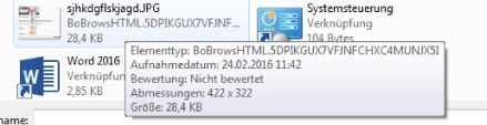 Des Weiteren wird als Dateipfad (bzw. Elementtyp) ein Teil des ehemaligen Virus angezeigt, wenn ich über ein gespeichertes Bild streife, welches ich hier hochladen will: