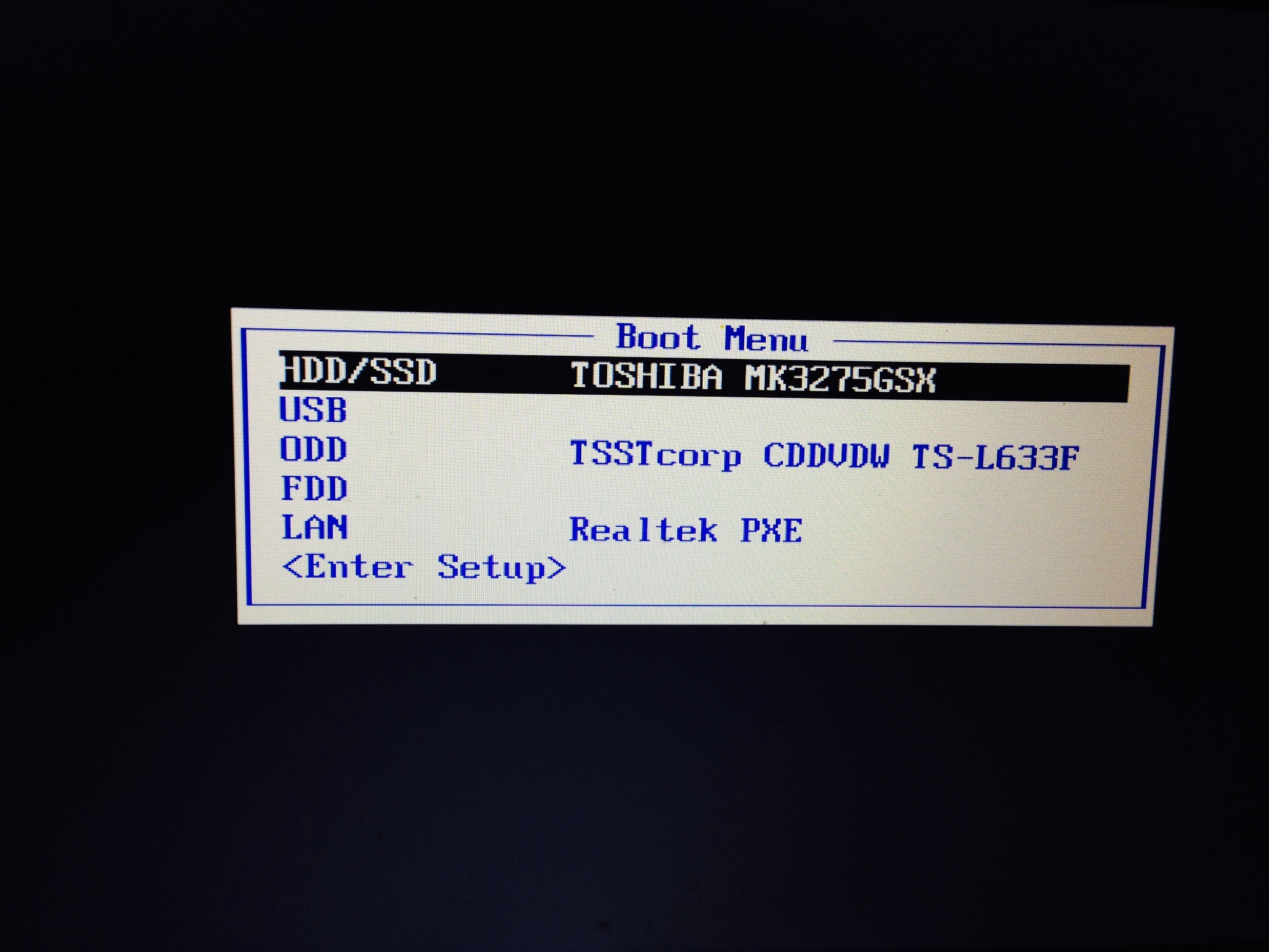 Hallo, ich habe eine kuriose Boot Problematik. Es handelt sich um ein günstiges Toshiba Notebook mit einem AMD Vision Prozessor. Von einem Tag auf den anderen kommt direkt nach dem einschalten ein schwarzer Hintergrund und in der Mitte das Boot Menue, in dem ich das Gerät dann mit der Enter Taste von der HDD starten lassen kann, oder theoretisch über Enter Setup auch in das Boot Menue komme. Dieses Boot Menue Fenster kommt unaufgefordert schon nach 2 Sekunden und so zwar so schnell, dass ich z.b keine Möglichkeit habe das Gerät über die Taste F11 wieder in die Werkseinstellung zurückzubekommen.