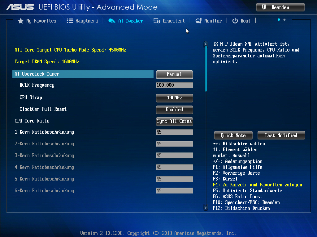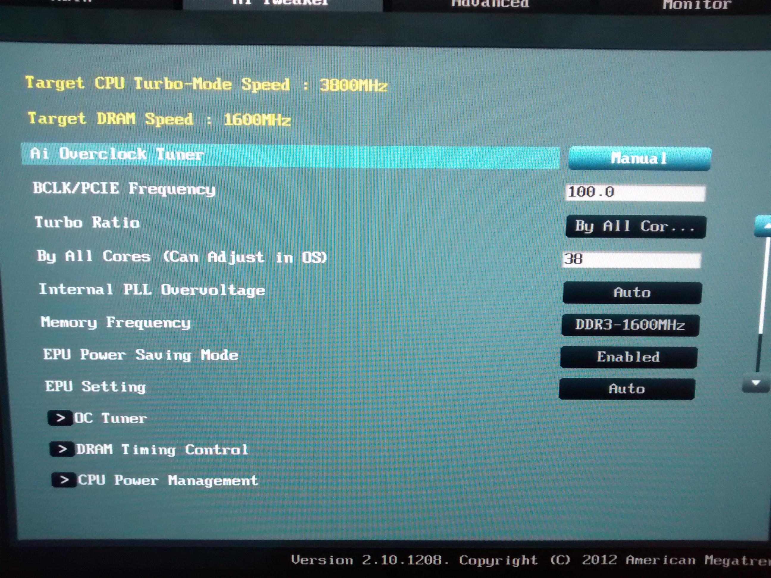 Nun kenne ich mich mit den Einstellungen für den Prozessor und Voltzahlen in BIOS gar nicht aus und auch nicht mit übertakten. Ich frage mich deshalb ob mein Prozessor vielleicht übertaktet läuft weil das BIOS es so automatisch einstellt. Habe wie gesagt nichts an den Einstellungen nach dem Flashen verändert. Nun habe ich einen Test mit Prime gemacht und cpu-z und core-temp zeigte mir das mein core speed unter Last auf 4400mhz ansteigt und der Prozessor innerhalb weniger als einer Minute 90° heiß wird. Sollte er unter Last nicht auf höchstens 3800mhz gehen? Wie kann das sein? Daraufhin habe ich in einem Beitrag gelesen wie man das runter stellt. Also habe ich im BIOS die BCLK/PCI E Frequency auf 100 und den