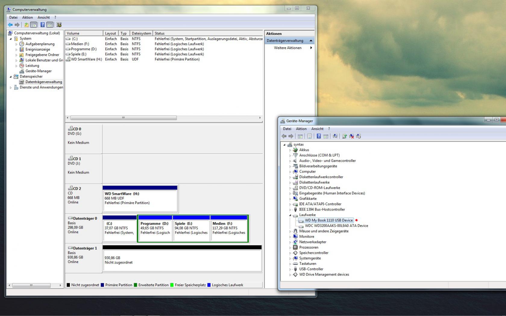 bei gemacht und zwar (wenn ich mich recht entsinne) bin ich dann unter Datenträgerverwaltung auf "Neues einfaches Volumen..." gegangen, dort kann man ja auch den Laufwerksbuchstaben hinzufügen,... allerdings fragt der einen ob man formatieren wolle, nein natürlich nicht, ein Haufen Filme sind drauf und wichtige schulische Sachen. So, gemacht und jetzt meint der der ganze Salat wäre RAW. Denn Vorgang hab ich übers Sharkoon Case gemacht. Jetzt wird das Ding auch nicht mehr im alten WD Case angezeigt...