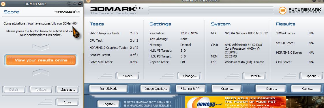 Als Ergebnis hatte ich mit 3DMark06 Version 1.10 nur knapp 8000 Punkte.