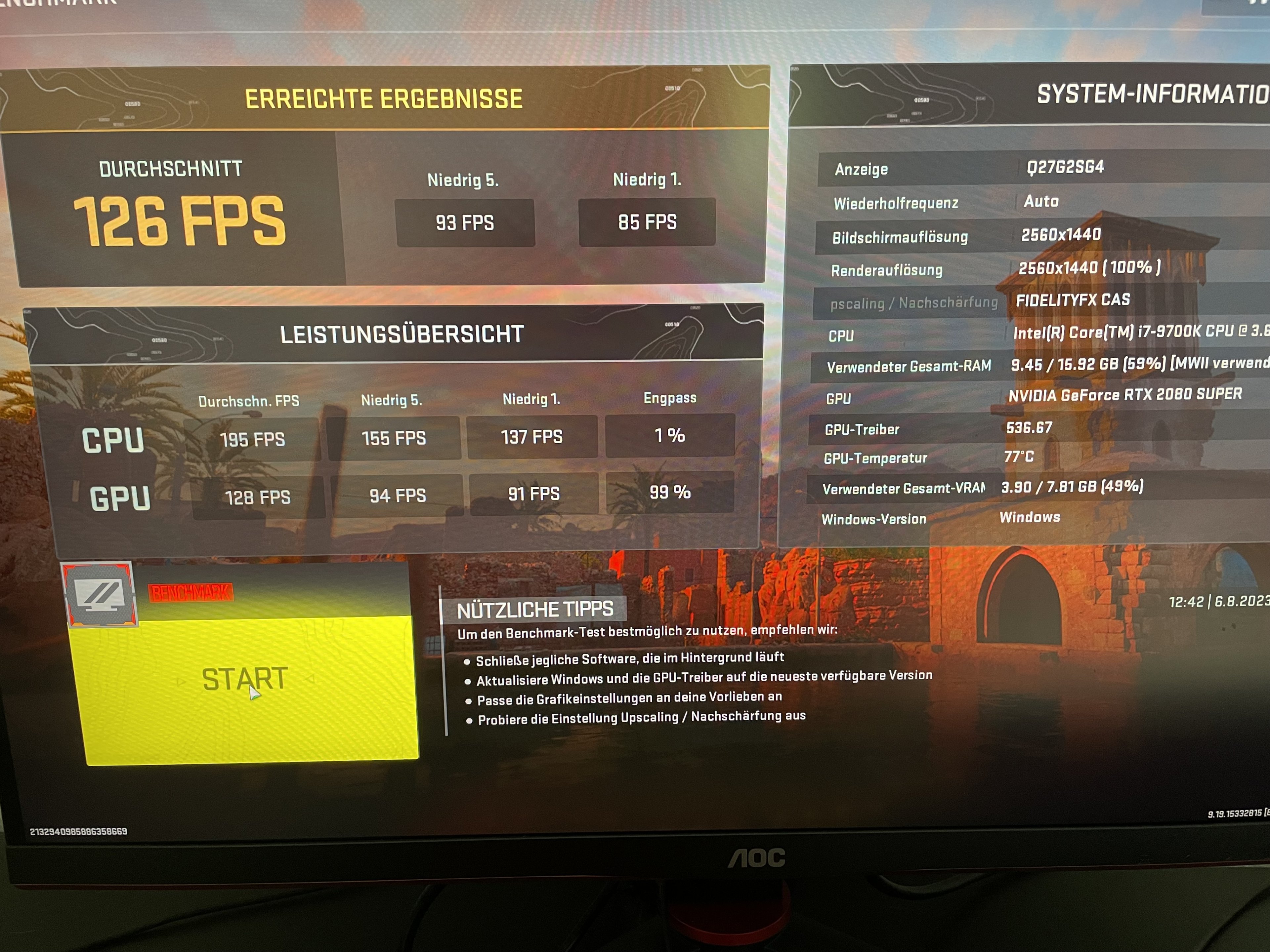 Ingame sind es leider nicht die fps vom ingame benchmark. Komme zwischen durch kurz mal auf die 126 aber in der Regel liege ich darunter. Werde mich dann wahrscheinlich mal um eine neue Graka umschauen und auf 32 gb RAM aufrüsten